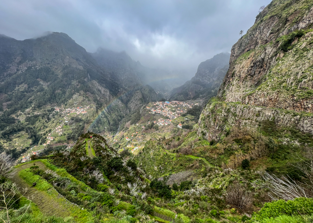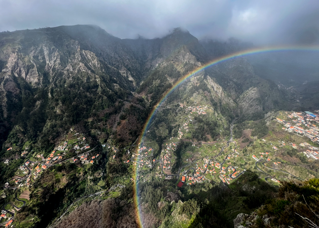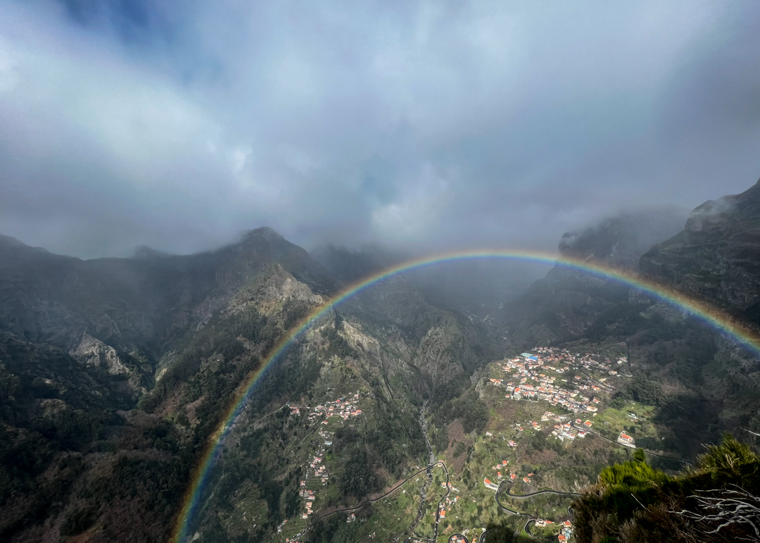 A taxi or bus can take you up the twisting mountain road north of Funchal to reach the middle of the island and the picturesque Curral das Freiras – or Refuge of the Nuns. This half-day trip combines great scenery, light hiking, and good food… and if you’re lucky some full circle rainbows. Ask to be dropped at Eira do Serrado for the viewpoint and the start of the hike down. The view from up here at 1,006 meters/3,300ft is breathtaking and takes in the entire valley as well as the village, surrounded by extinct volcanoes.