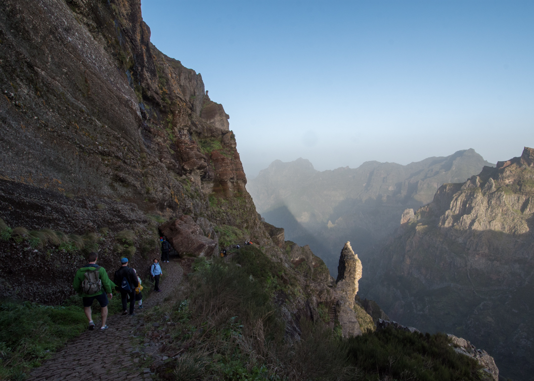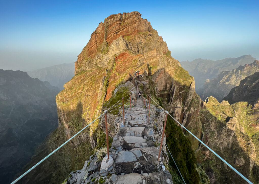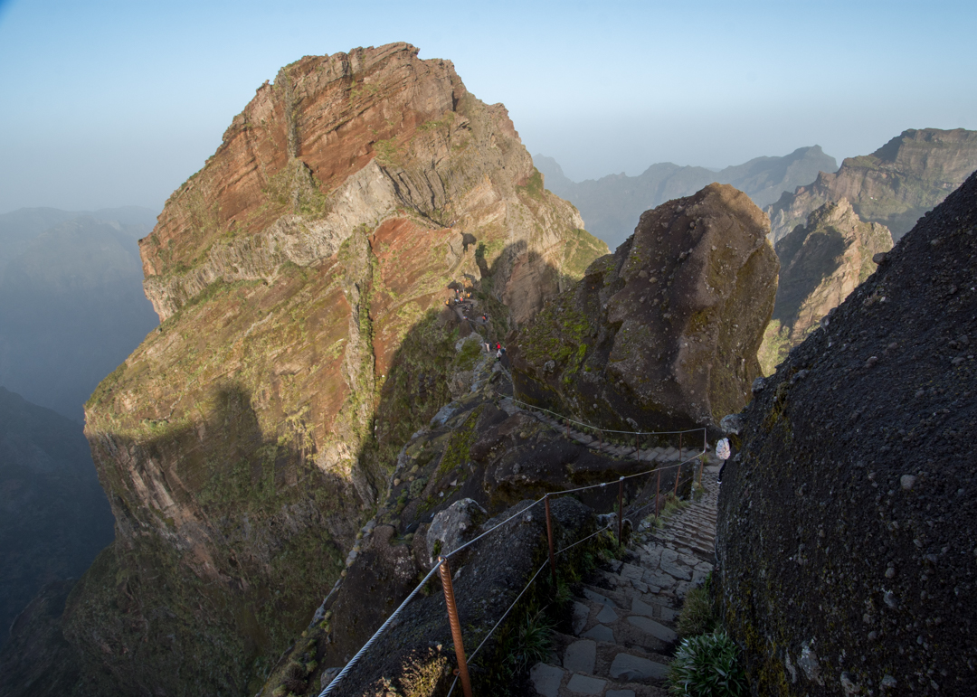 Once you reach the staircase, it’s time for the toughest workout of the hike – a steep climb across Pico das Torres using near vertical stairs. You’ll want to stop for water and food a few times to replenish your energy, and it’s probably the place where you’ll see the most hikers apart from the summit as everyone will be breaking the climb in parts.