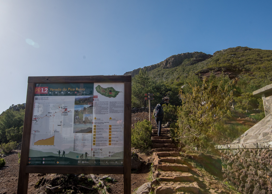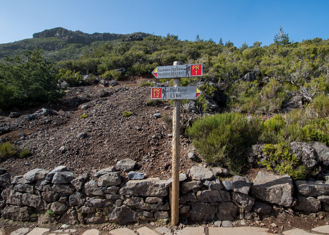 You’ve officially finished PR1 which concluded at the summit, and are now starting PR1.2 which will bring you to Acha dos Teixeira and the parking lot where the shuttles and taxis are picking hikers up.