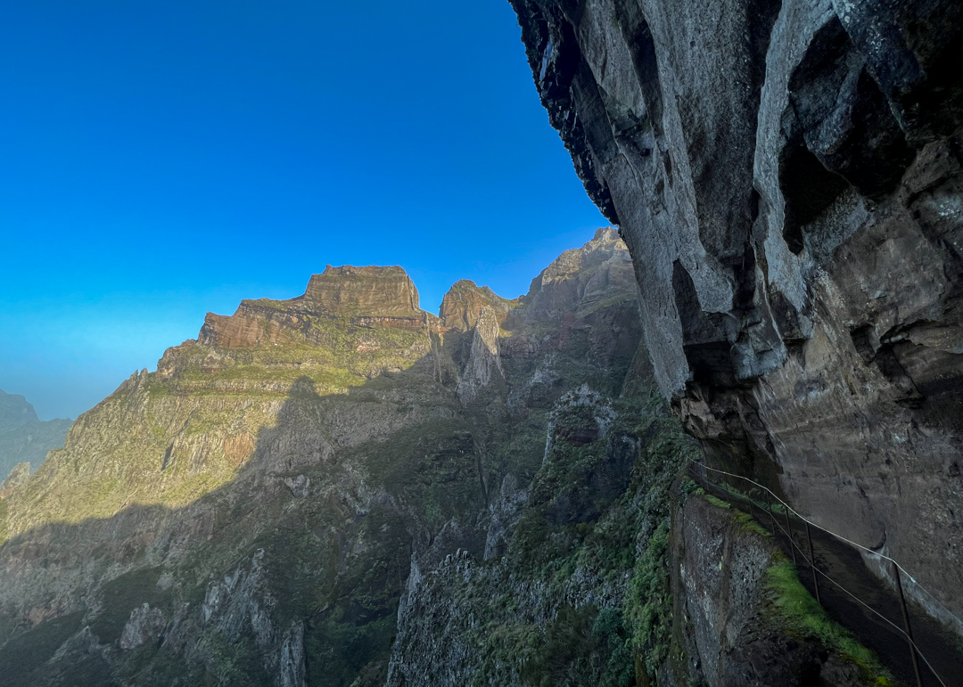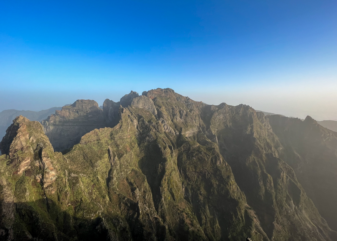 The small balcony provides picturesque views over Madeira’s Central Mountain Range and its majestic rock formations just getting hit by the first light of day.