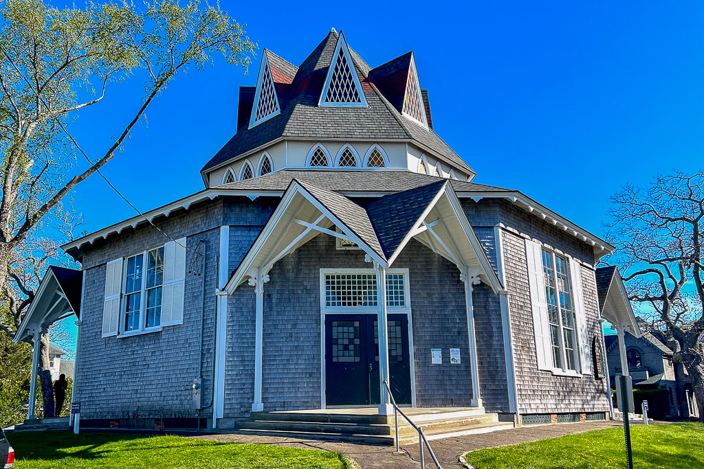 The octagonal Union Chapel (1870) right outside the camp also seems to fit right in minus the pastels.