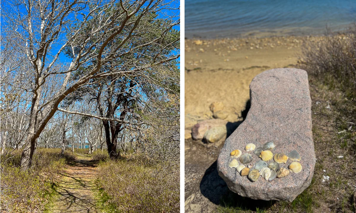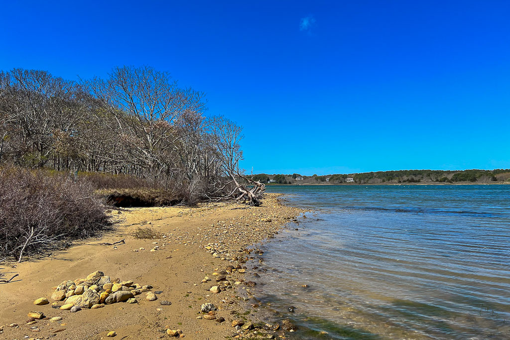 Soon you reach the shore of Sengekontacket Pond after a lovely woodland walk. Just another place to sit for a bit and listen to the water gently lapping the shore with no one else around. What better way to end this beautiful outdoorsy day.
