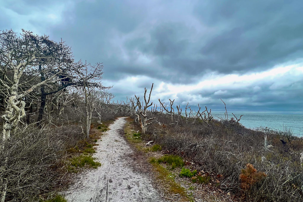 Next, wander through a corridor of salt-blasted trees and shrubs with strong ocean winds cooling you off.
