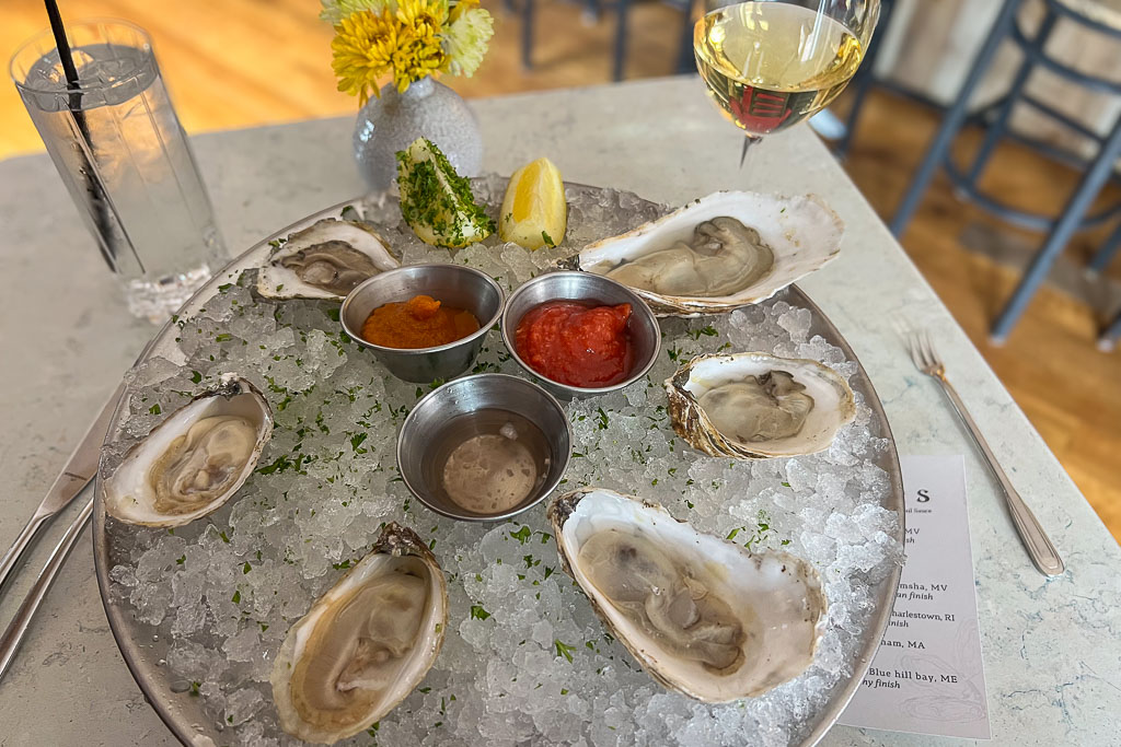 Back in Edgartown, you’re ready to indulge in a bit of chic city outing after this morning’s nature break. You’ll find plenty of shops, galleries, and restaurants (usually bursting at the seams in the summer but wonderfully chill on this quiet weekday in May).