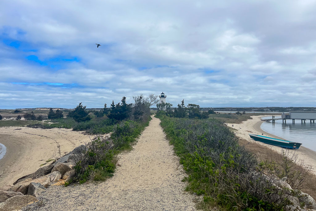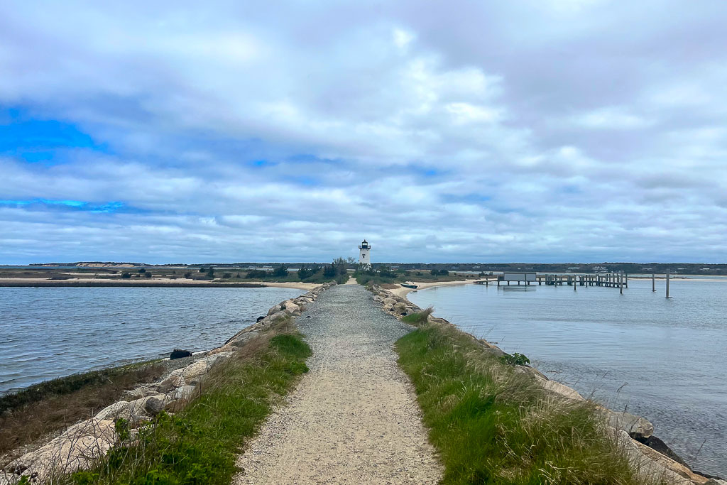 At the end of North Water Street you’ll see the lighthouse directing boats around Edgartown harbor. It’s a short and pleasant walk to reach it across a narrow spit of sand.