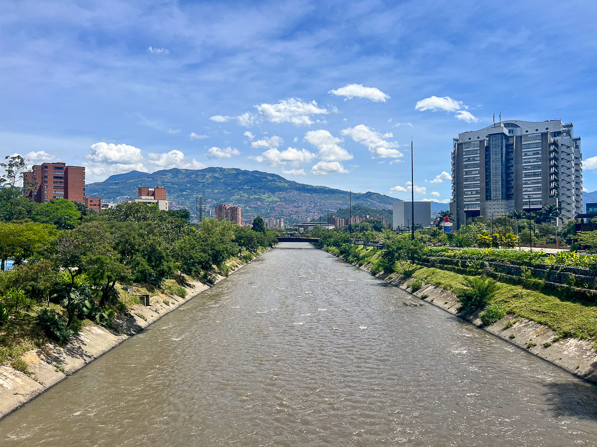 Pedestrian bridges cross the river, letting you hop from one side to the other easily and get a beautiful perspective on downtown Medellín.