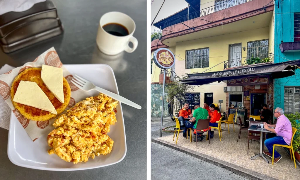 The highlight of my culinary exploration in Laureles has to be breakfast at Famosa Arepa de Chocolo. Ask any Colombians and they’ll all get emotional thinking about their mom’s version of this sweet corn cake topped with queso blanco. While I didn’t get to try a “homemade” version, the arepa I ate there was perfection…and I became a regular. With a side of salty scrambled eggs and a strong cup of coffee, I dare you to show me a better breakfast in Medellín.