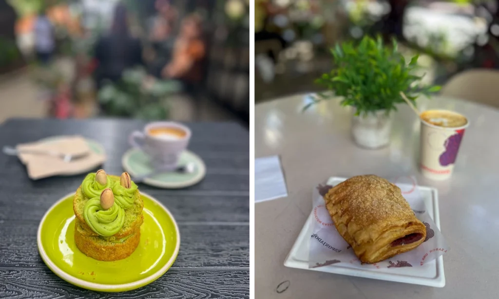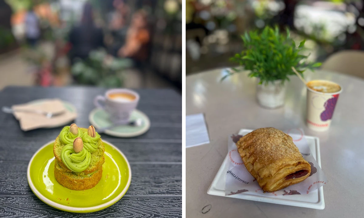 Cake shops and bakeries abound in the neighborhood, all with sidewalk and shaded tables, so you can make your rounds and get your sweet fix mornings and afternoons.