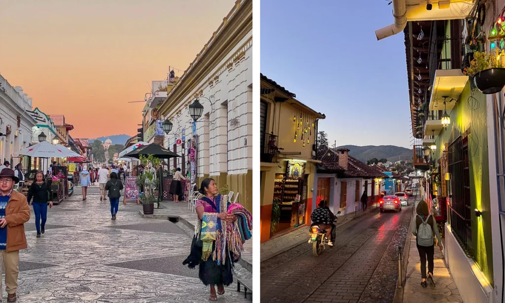 The afterwork crowd mingle at sunset as temperature drops. Indigenous sellers pound the cobblestones, their arms filled with colorful textiles, perfect to wrap around your chilled body as you slowly fall for this most magical of pueblos.